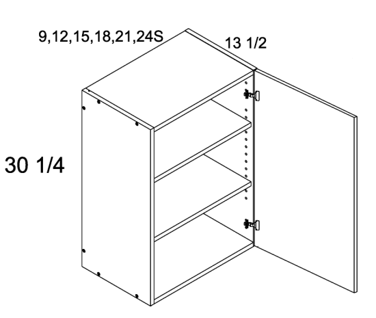 Gloss White - 30" High Wall Cabinets One Door - 24"W x 30-1/4"H x 13-1/2"D