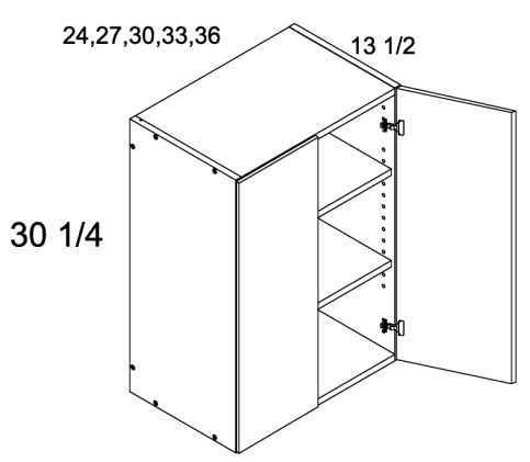 Gloss White - 30" High Wall Cabinets Two Door - 33"W x 30-1/4"H x 13 1/2"D