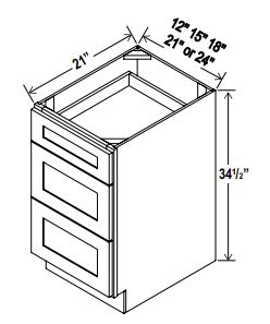 Navy Blue - Vanity Drawer Base Cabinet - 12"W X 34-1/2"H X 21"D - 3 Drw