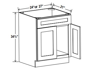 Navy Blue - Vanity Sink Base Cabinet - 27"W X 34-1/2"H X 21"D - 1 False Drw Front, 2D