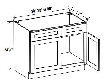 Shaker White - Vanity Sink Base Cabinet - 33"W X 34-1/2"H X 21"D - 2 False Drw Front, 2D
