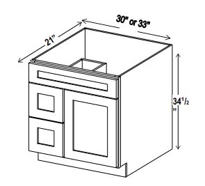 Aspen White - Vanity Sink Base With 2 Drawers - 33"W X 34-1/2" X 21"D - 1 Top False Drw Front, 1D, 2 Left Drw,